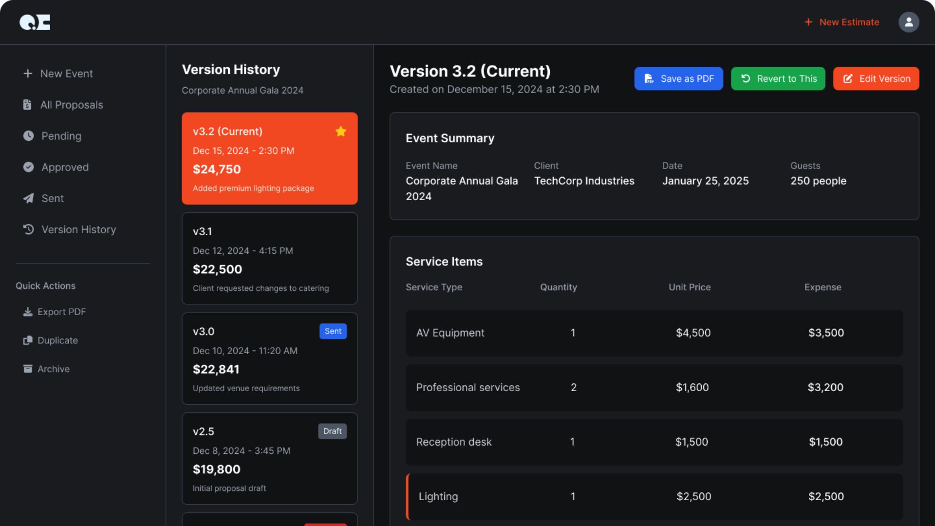 Help your clients book 50% more events with confident, accurate proposals.